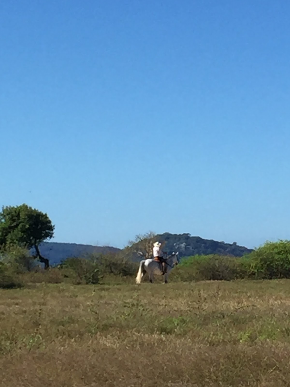 Today, after siesta, we went adventuring up the dump road, and through the back road from La Peñita to El Monteon. The rough road made it a walking pace adventure, it was also narrow, and overgrown with vegetation. We got to see the dump, covered in vultures and egrets, waded through places where the stream was flowing along the road (the loose, rounded rocks under the water giving the CRV's AWD a workout, as all four wheels slowly worked their way through and over the rotating, fist-sized rock/steam bottom), and checked out the agave fields, mango orchards, and cattle grazing, and generally had a good time meandering along through the alternating semi-fields and jungle.